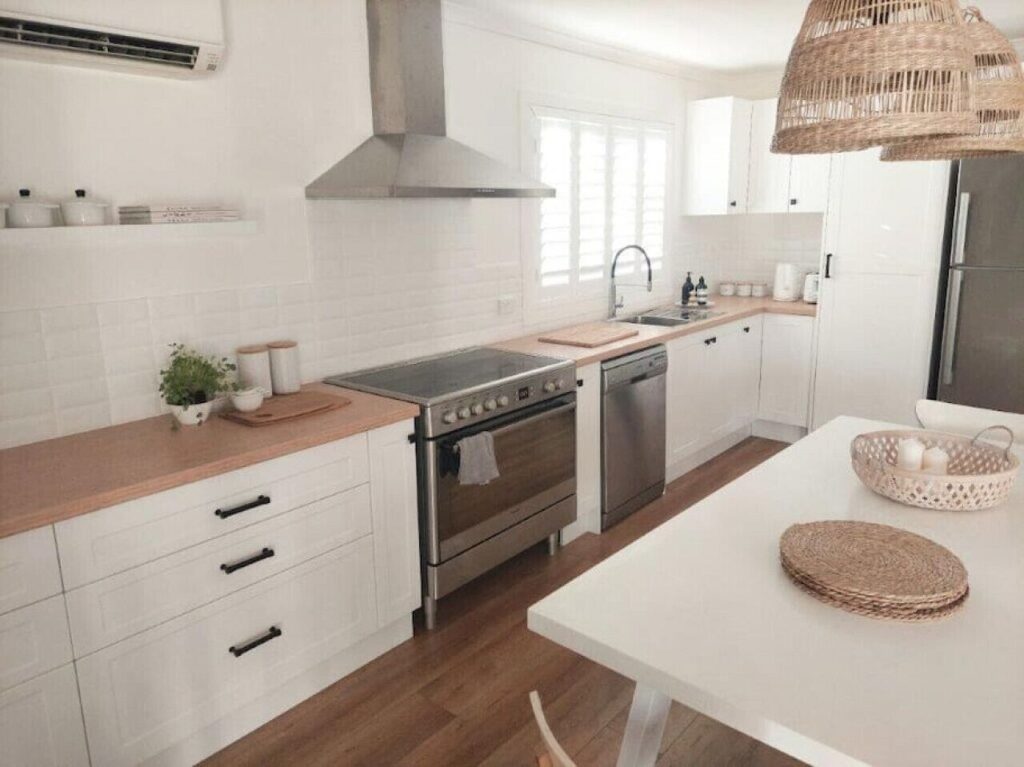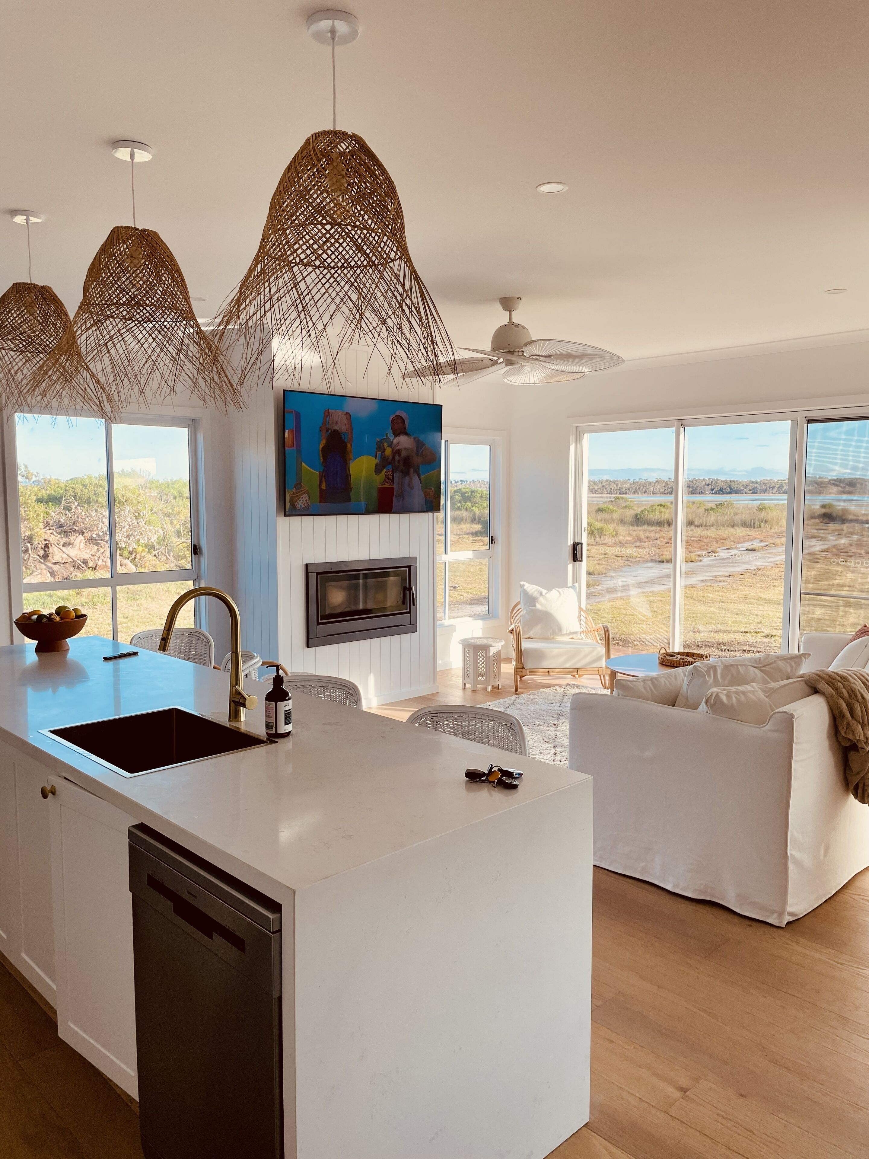The indoor fire will keep you warm on those cool nights and the tranquil surrounds will leave you feeling rested and rejuvenated, the only noise being the soothing sounds of the ocean not far from your doorstep. With a flat screen, smart TV, plantation shutters and butcher block counter tops in the kitchen and bathroom, the new stainless-steel appliances and modern furnishings feel luxurious. With a relaxed coastal vibe, this private cottage feels like a home away from home.